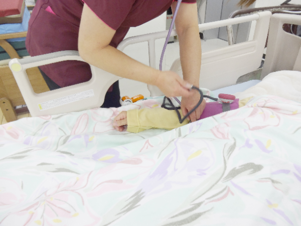 看護師がご自宅に訪問し、主治医の訪問看護指示書に基づいて検温などの体調管理、